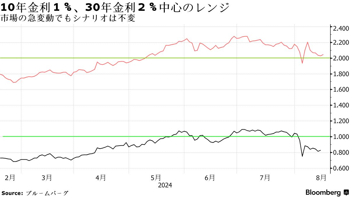 これらの混乱を、これまで金融政策という点では影が薄かった氷見野副総裁の講演が整理していくことになる。氷見野副総裁の講演は市場関係者が気にしている論点を的確に把握していたのが印象的である。金融資本市場の不安定さを認識した上で、「経済・物価の見通しが実現する確度が高まっていく、ということであれば、金融緩和の度合いを調整していく(=利上げ)、というのが基本的な姿勢」であることを再確認した。つまり金融資本市場が不安定でも、それが金融政策に影響を与えるのはあくまでも経済・物価見通しに影響を与え得る場合である。原則として「株式指数が下がったら利上げがなくなる」中銀プットは再び消滅、少なくとも実際にクラッシュしていない限り利上げの「挫折」を織込むのは不可能になったと見るべきだ。更に本ブログがこれまで取り上げてきた通貨防衛的利上げ論の「裏」である「円安が収まれば利上げの必要性が薄れる」も揺らぐことになる。少なくともこの程度の円高&株安の組合せで日本経済がデフレに逆戻りするといった金融政策に疎い評論家達の観測だけは明確に否定された。円安修正の影響は消費においては物価減速による消費の回復、中小企業においてはコスト上昇圧力の軽減、大企業においても「よもや円安だけに頼って利益を上げてきたわけではあるまい」とそれぞれまとめられている。円高がインバウンド需要に、株安が高額品消費に影響する可能性にも触れているが、総じて消費は腰折れしないのをメインシナリオと据えている。つまり円安の修正は利上げ継続を妨げないのである。一方、植田総裁が利上げを急いだロジックとして取り上げ、内田副総裁が否定した「ビハインド・ザ・カーブに陥らないための予防的利上げ」論はこれ以上登場せず、この話はどうもそれっきりになったようだ。これは7月会合の説明が前のめりであり、内田副総裁の方が妥当だったという裁定になるだろう。結局、大事なのは日銀は引続き行動の自由を保持しているということである。利上げを迫られてもいなければ、利上げサイクルが挫折したわけでもない。挫折したわけでないなら――それが今年中になるか来年になるかはともかく――当然残り1回以上は利上げが控えており、その時点で政策金利は0.5%まで上昇するわけなので、近い将来に長期金利が0.5~0.75%の区間に回帰する可能性は低いだろう。一方、先行する先進諸国が既にかなり深い利下げサイクルに差し掛かっていることが分かっている中、時間の経過と共に日銀の政策金利が予定通りに引き上げられるだけなら、長期金利はだんだん不感症になっていく可能性が高い。長期金利が1%を大幅に上回る可能性は引続き限定的である。