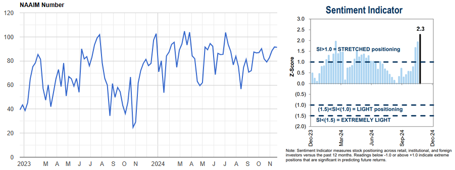 NAAIMは他の指標に反してあまり動きがなく思ったより過熱感が薄いが、GSのセンチメント・インジケーターは変な水準まで上がってきている。
