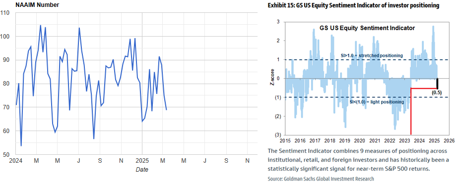 NAAIMはかなり悲観的になった。やはりアクティブ機関投資家は個人投資家より下手であると思われる中、AAIIが悲観化しただけでは底打ちにならず、底打ちにはどうしてもNAAIMの悲観化を待たなければならなかった。機関投資家が個人投資家より下手であると思われる中、NAAIMが楽観的である限り下がりやすいのである。今のポジションを整理すると個人投資家はとっくに悲観化しており、機関投資家は少し前にFMSが示唆した重いポジションを上から下まで持って来られた後に悲観化している。