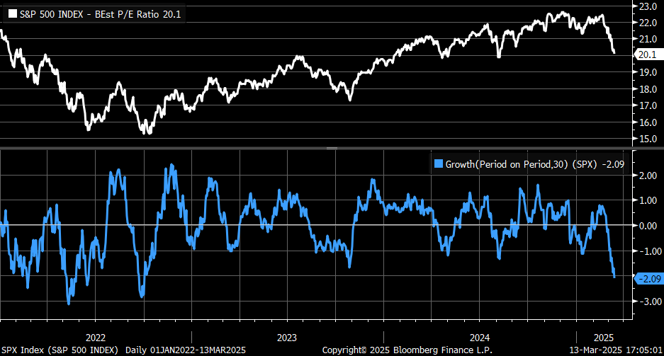 外しっぱなしのテクニカルからの示唆は今週は少ない。ダウ理論など言われなくても皆分かっているし、これまで下値割れを売っても踏まれる時代が長かったのでダウ理論にとって今回の長い調整は僥倖である。25SMAと大統領選以降のサポートラインが交叉する5800台前半が重くなりそう。下値はチャートよりもJPMカラーの5565の方が恐らく重要で、ここを守り切れれば月末にかけて下値リスクは緩和されていくし、再び叩き割られると不安定な相場が続きそうである。関税の本丸が4/2以降に控えているため、月末に近付くにつれてヘッドライン主導のフラッシュクラッシュのリスクも高まる。また3月後半は徐々にブラックアウト期間に入る(もっともそれ込みでも3月後半にシーズナリティが改善することが分かっている)。将来の関税と政府支出削減がもたらす経済環境悪化懸念が根本的に解決されない限り、ある程度の反発が見られた後は再び売り優勢になりやすいだろう(先週の記事でも述べたように中期的な下向きトレンドに転じた可能性がそれなりに大きい)が、ニューショートよりもショートカバーの方がインパクトが大きそうな価格帯と時間帯に入りつつある中、ショートカバーがそのリズムをどこまで乱すかである。