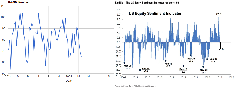 NAAIMは更にじりじりと悲観化している。とはいえ昨年以来NAAIMの動きの鈍さが目立つ。GSセンチメントはマイナス域の推移が続く。