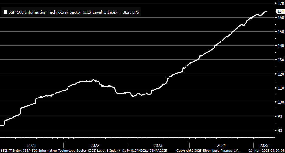 マグニフィセント7が最も大きく売り込まれたが、情報技術セクターのコンセンサスEPSは依然堅調である。ここまでの調整はPERの調整であり、調整後のバリュエーションには問題がない。