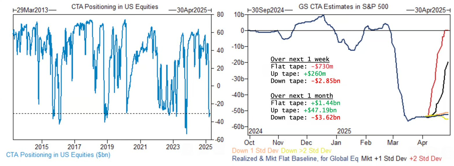 CTAは今更売り涸れているが、リアライズドVolが急上昇したため、BofAは月曜4/7にVolコントロールの大幅な売りを見込む。木曜4/3、金曜4/4共に下げ幅が2%を超えたため、金曜4/3と月曜4/7の終盤に機械勢の売りが降ってきやすいのは教科書通りである。