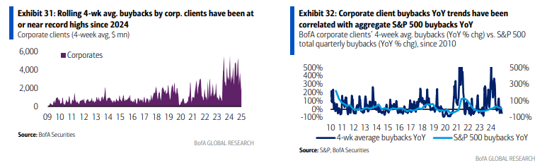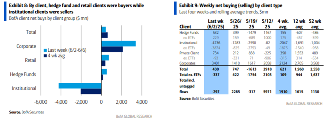 先々週のフローは相変わらず企業の自社株買い vs機関投資家の売りであり、どちらも加速している。