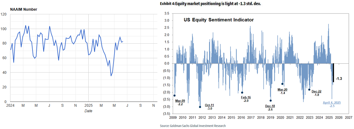 NAAIMは小動きで引続き楽観域にある。一方GSセンチメントはマイナス域で停滞しており、インサイダーは比較的大幅な売り越しとなっている。