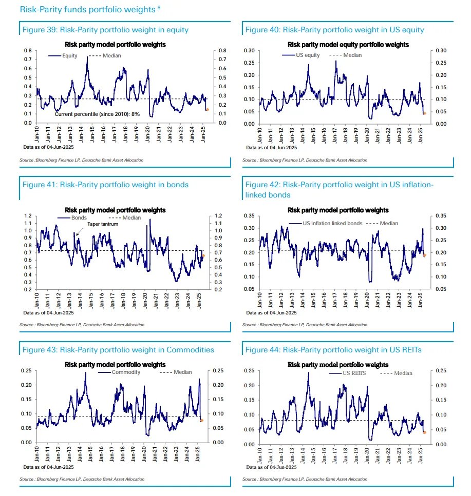 久々にリスクパリティのポジショニングも流れてきた。こちらはvolコントロールの足が遅い版であることが知られており、ポジションは非常に軽い。