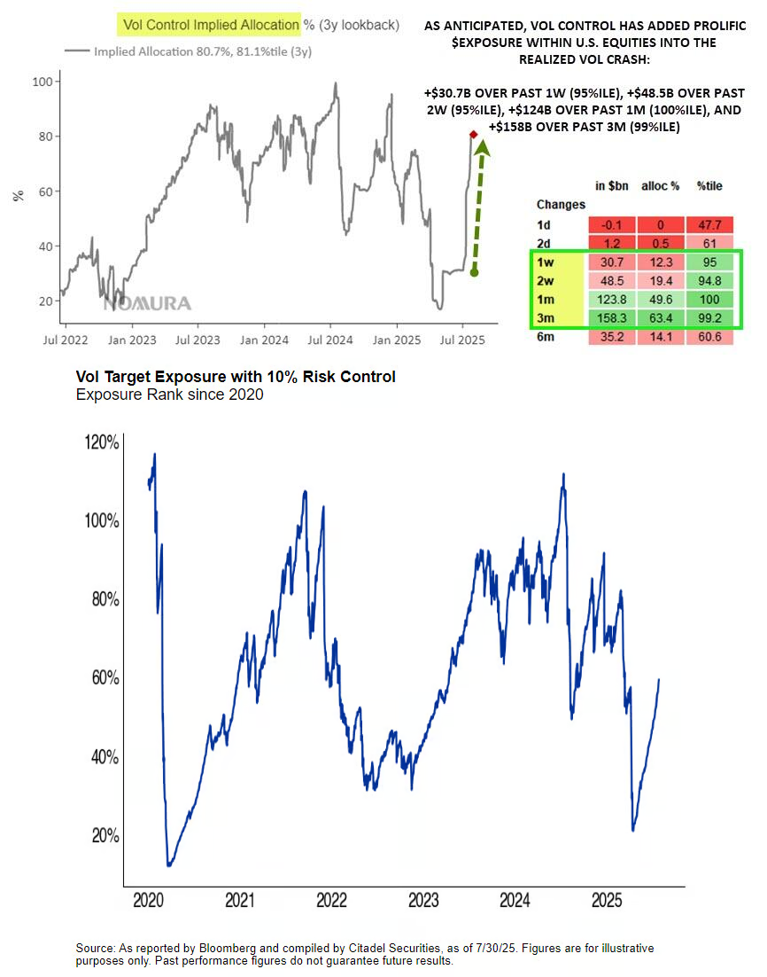 野村のVolコントロールのポジション推計も同様のチャートを描く。一方、珍しく流れてきたシタデルはVolコントロールの復元がまだ道半ばと見る。