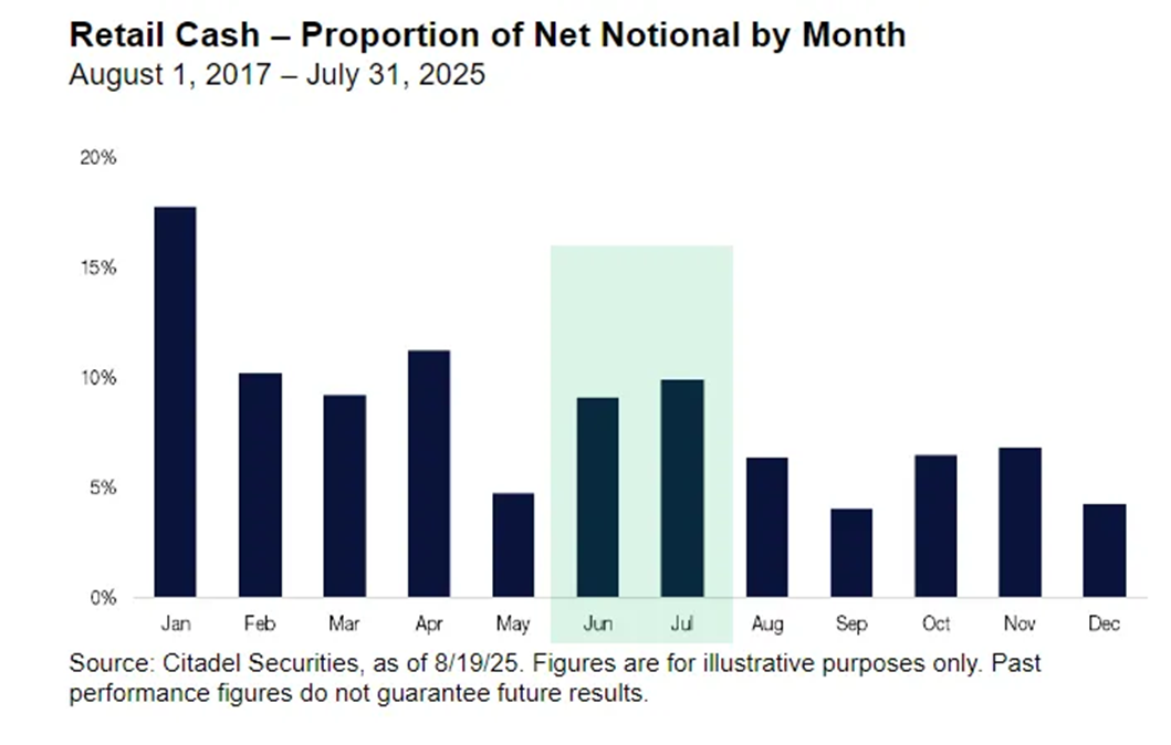 シタデル証券によると個人投資家の活動は夏休みが明けると一旦鎮静化する。