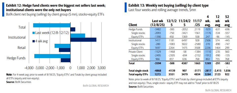 BofAは12/8の週では個人投資家とHFが投げ、機関投資家がやや胃もたれ気味ながらも買い足している。