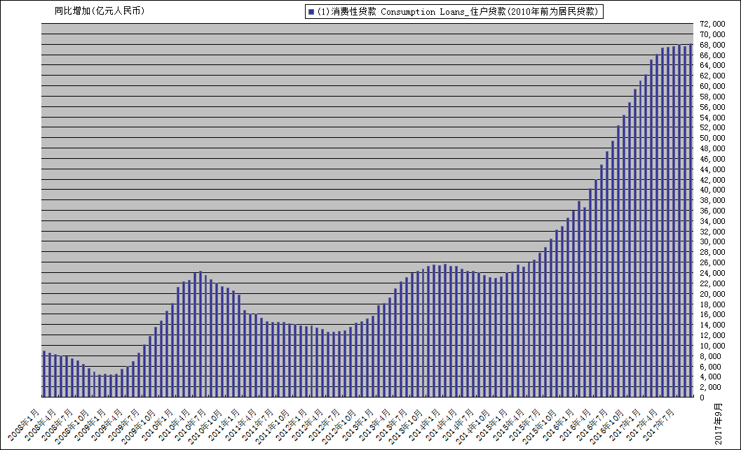中国の消費者ローンの不自然な急増が話題になっている。明らかに多くの個人が、本来旅行や車、その他グッズの購入に使われると想定されている消費者ローンを利用して住宅購入の頭金を借りている。この不自然な急増は7月までには話題に上っており、9月末には銀監会が問題を認識し、調査を始めている。